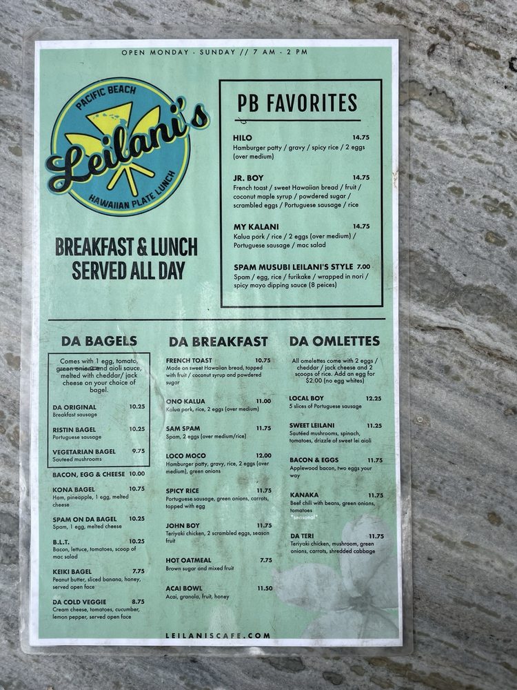 Leilani's Cafe Menu (2025 Update)